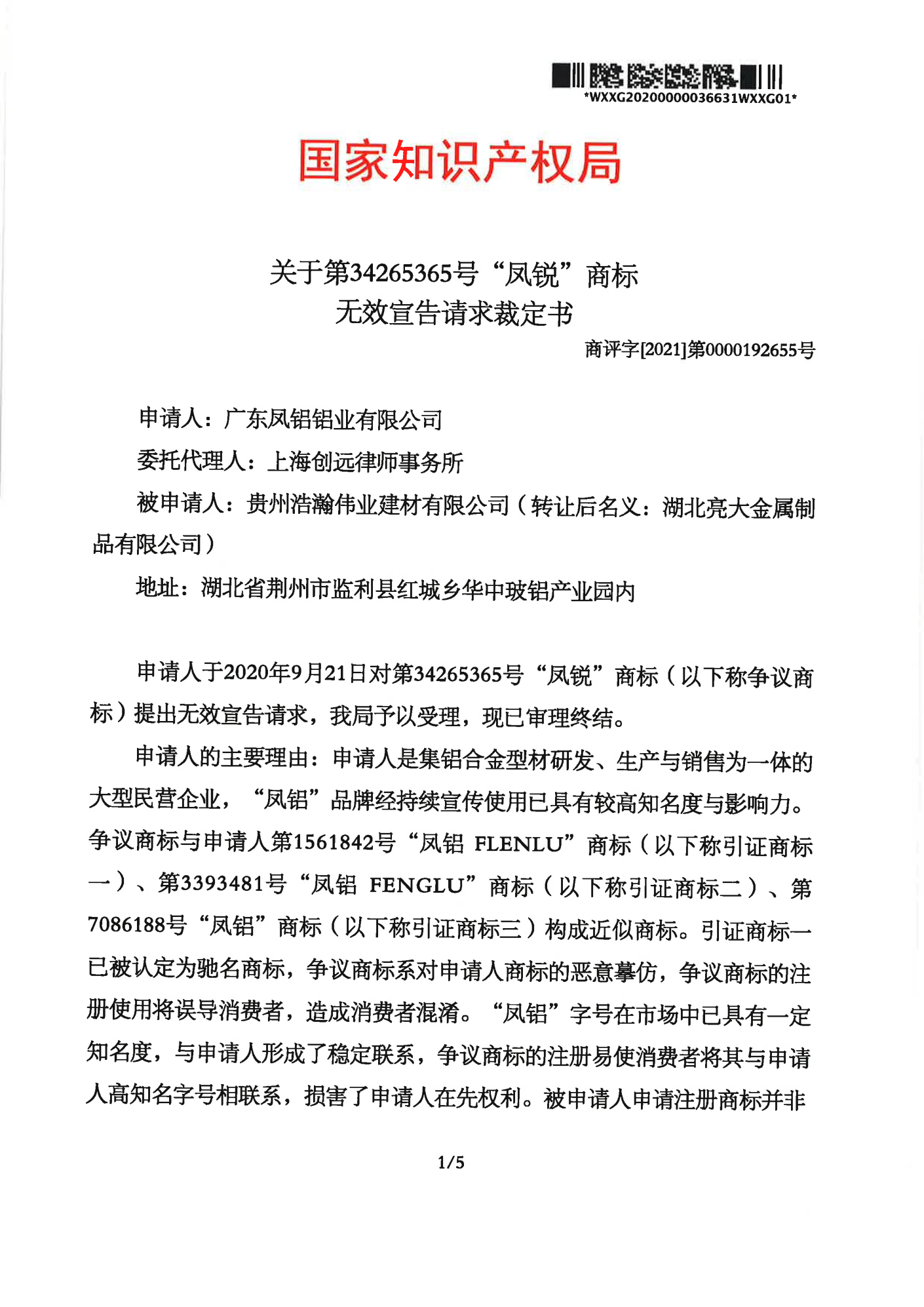 包头辉知队 | 国家知识产权局:“凤锐”商标无效
