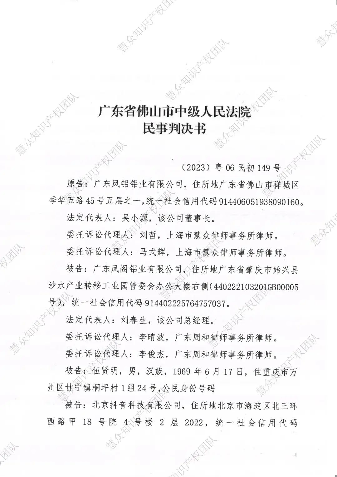 包头判赔800万!辉知队代理“凤铝”商标维权案胜诉
